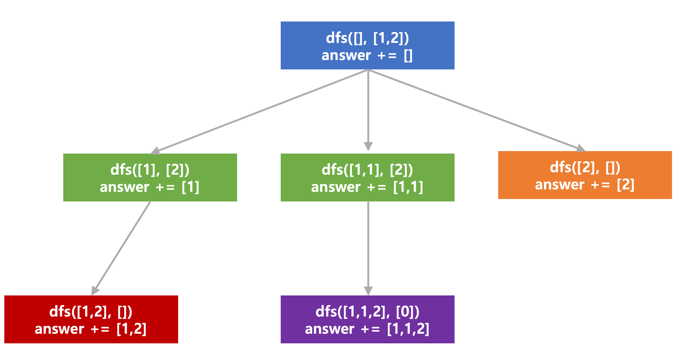 예를 들어, [1,1,2] 라는 input이 들어왔을 때 이 알고리즘은 아래와 같이 동작한다.