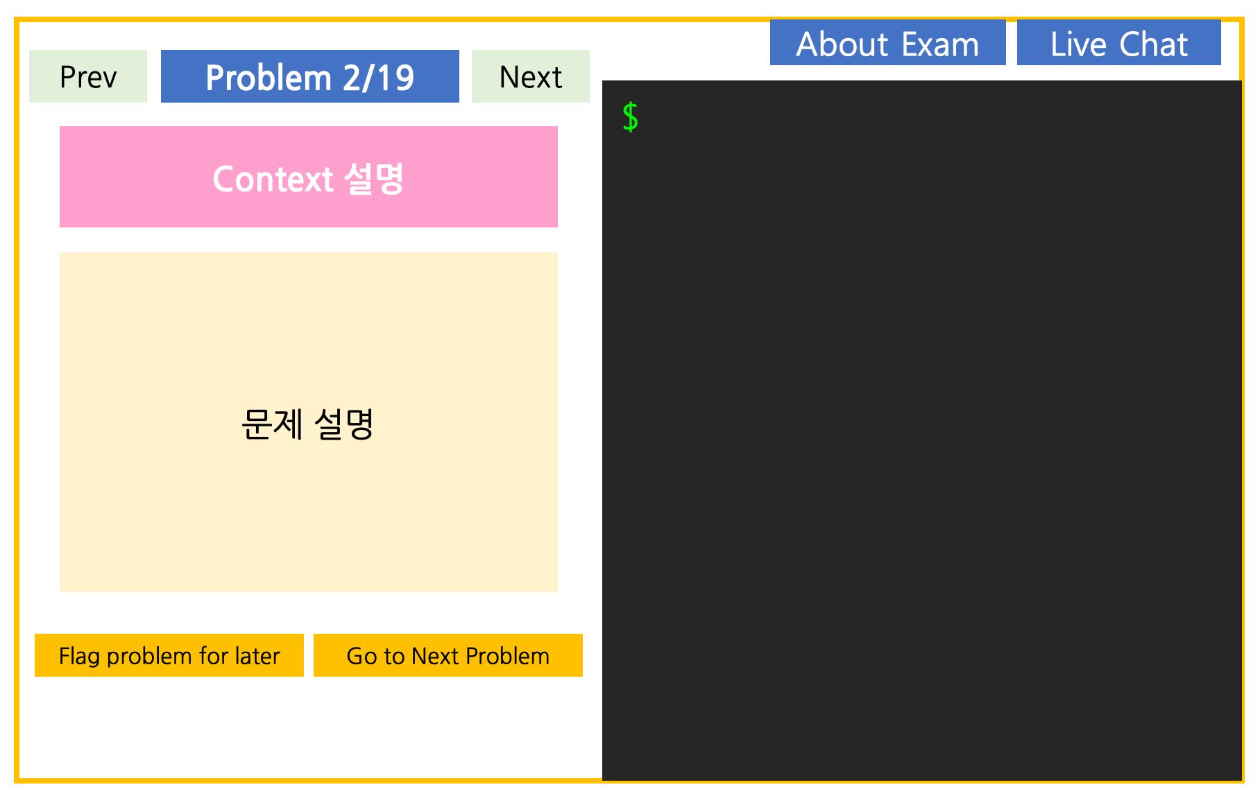 시험을 시작하면, 아래와 같은 화면이 보이게 된다.
