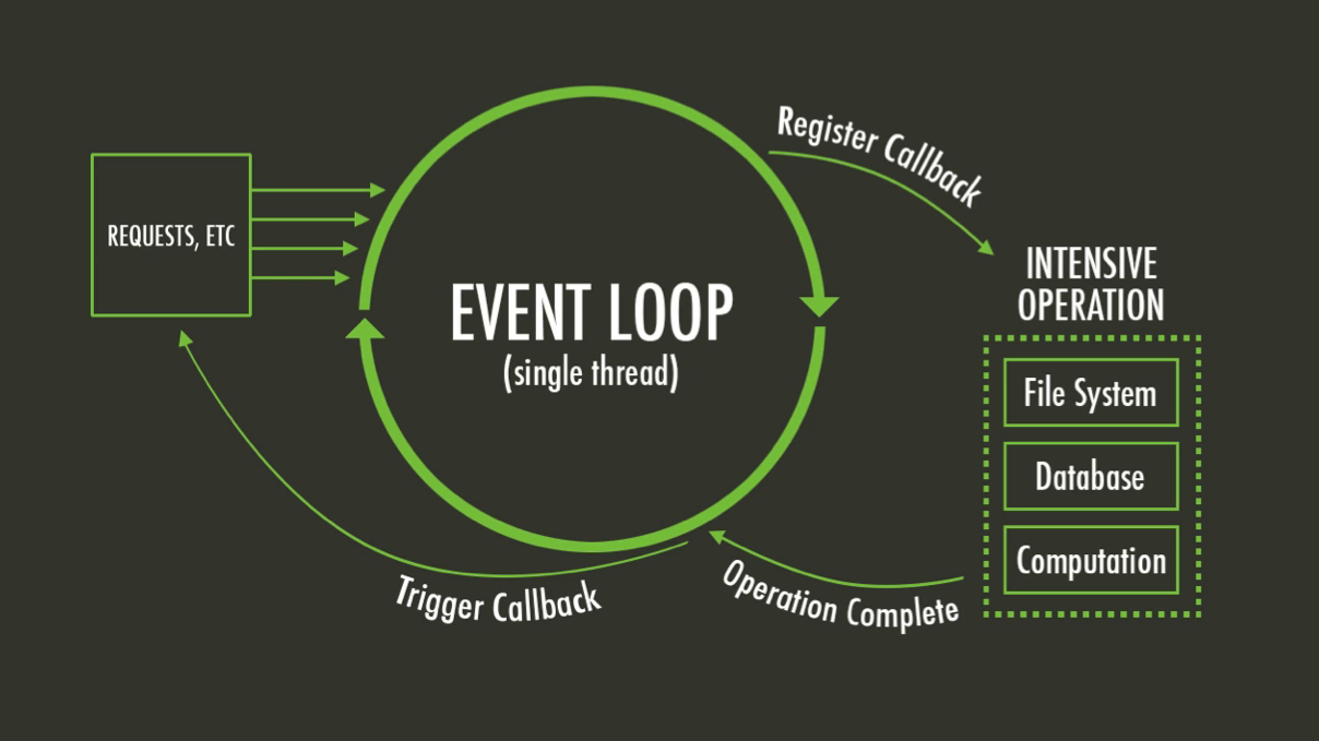 이벤트 루프는 비동기 I/O 작업을 관리하고, 처리해야 할 이벤트를 지속적으로 확인하며 실행하는 역할을 한다. 이벤트 루프는 Event Queue를 관리한다. 이 이벤트 큐는 네트워크 I/O, 타이머, 사용자 입력 등 이벤트 루프가 처리할 작업을 저장하고 있으며, 이벤트 루프는 지속적으로 이벤트 큐를 확인하며다 다음으로 처리할 작업을 꺼내어 실행하는 역할을 한다. 즉, 이벤트루프는 간단히 말해 계속해서 이벤트큐를 모니터링하며 새로운 작업이 있는지 확인하고, 새로운 작업이 존재할 때 스레드를 할당하여 작업을 실행하도록 하는 무한루프이다!